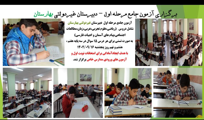 آزمون جامع مرحله اول دبیرستان غیردولتی بهارستان