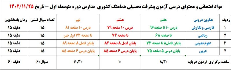 برگزاری آزمون هماهنگ کشوری پیشرفت تحصیلی
