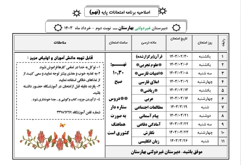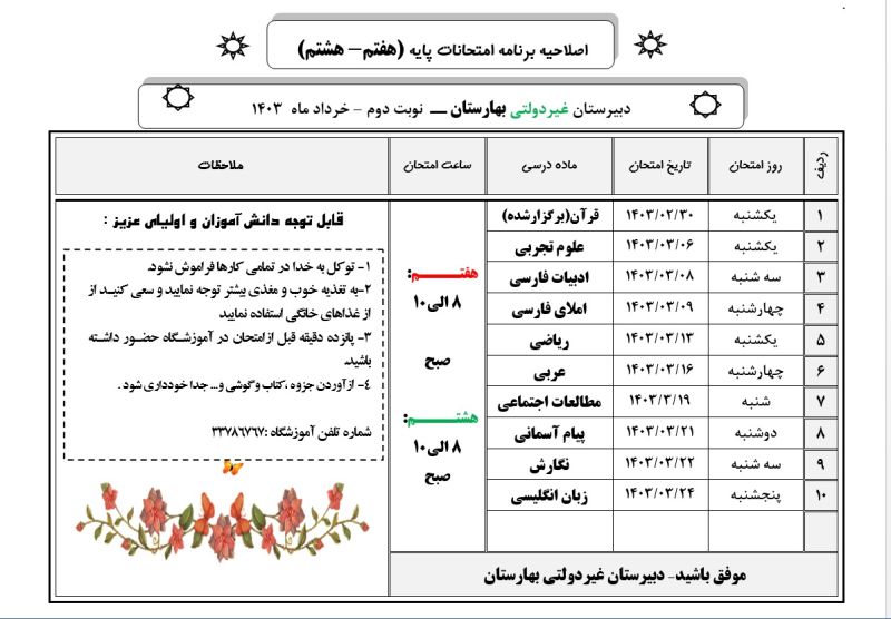 اصلاحیه برنامه نوبت خردادماه۱۴۰۳