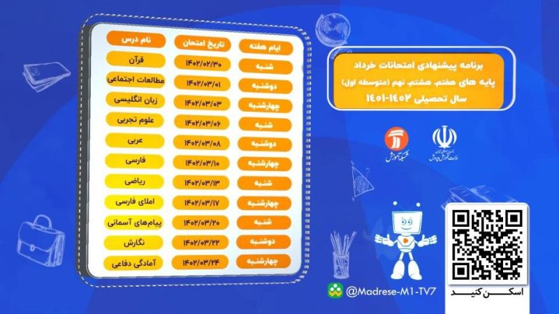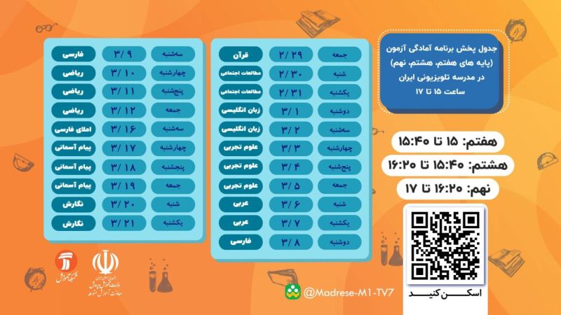 جدول پخش برنامه های تلویزیونی ویژه آمادگی بیشتر برای امتحانات نوبت دوم