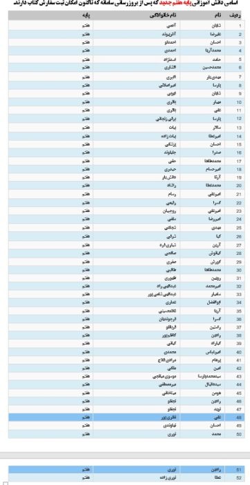 اسامی دانش اموزان پایه هفتم که امکان ثبت نام برای کتاب دارند