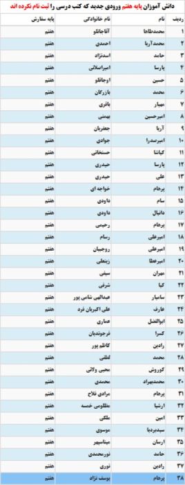 لیست دانش آموزان عزیز پایه هفتم ورودی جدید برای ثبت نام کتب درسی
